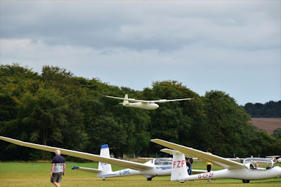 With the launch point set up in the North East end of the airfield and all Club gliders taken out of the hangar flying was soon underway with Dan Hender demonstrating his skills at both handling the conditions and making use of the evident strong thermals in and amongst the heavy sink around the airfield - with a flawless approach and landing, a decision was made to leave any further flying for Dan until later in the day when the wind was forecast to reduce in strength.