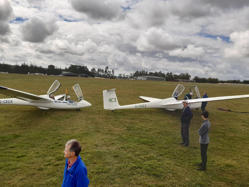 Despite the first few flights just being circuits, we saw several private owners rigging - they'd seen the cumulus to the north but out of reach even from the aerotow. Fortunately it became soarable in the blue with the usual pundits managing some cross-country flights.
