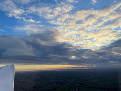 At the briefing, I mentioned that we might well be varying the card colour between yellow and blue all day due to the forecast gusts, this proved to be the case. The wind was WNW strong and very gusty at times, both Juniors, a K21 and the DG505 were taken to the launch point. From the very first launch the ridge was working with some lively thermals intermixing with ridge lift and what felt like wave rotor, the approach was tricky to say the least, initially Instructors opted to do the takeoff and landing unless there was a temporary lull in the gusts.